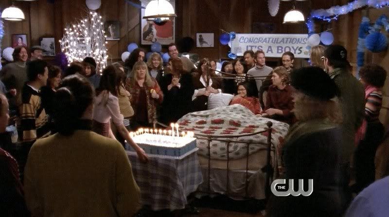 Kaupunki järjestää Lanelle vauvakutsut neiti Pattyn luona, jotka hän joutuu nauttimaan sängystään käsin, koska hän päätyy vuodelepoon (kaksosten äitinä tunnen häntä henkisellä tasolla). Zack, rouva Kim, Lorelai ja Rory rullaavat Lanen sängyn kaupungin läpi saadakseen hänet juhliin, ja se oli naurettavan upeaa.