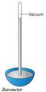 Las personas, por supuesto, también tienen la presión atmosférica presionando sobre ellos. Una persona de tamaño medio probablemente tiene una fuerza total ejercida sobre ella por la atmósfera de más de 25.000 libras. Afortunadamente, las personas también tienen aire en su interior para equilibrar la fuerza. Un dispositivo para medir la presión atmosférica, el barómetro, fue inventado en 1643 por un científico italiano llamado Evangelista Torricelli (1608 – 1647) que había sido alumno de Galileo. El barómetro de Torricelli se construyó llenando un tubo de vidrio, abierto por un extremo y cerrado por el otro, con mercurio líquido y luego invirtiendo el tubo en un plato de mercurio.
