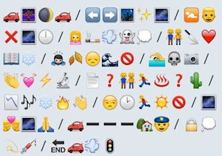 Emoji storiesは、Tyler Schnoebelen氏が調査した絵文字の文法に依存しています。 絵文字の物語のための文法的なルールのいくつかは、上に示した物語に表されています。
