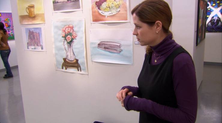 パムは芸術を愛し、それをオフィス中に知らしめた。 水彩画やイラストを描くのが好きだったが、それをどうしたらいいのかわからなかった。 ロイと別れ、結婚式を中止して、自分のアートに集中し始めたのです。